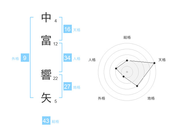 中富 響矢さんの総格は43画の2点!