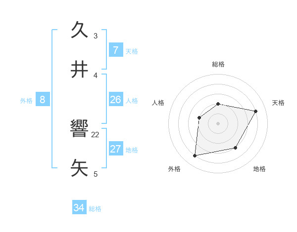 久井 響矢さんの総格は34画の2点!