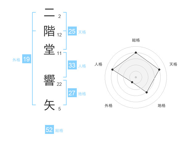 二階堂 響矢さんを姓名の画数から五運を鑑定