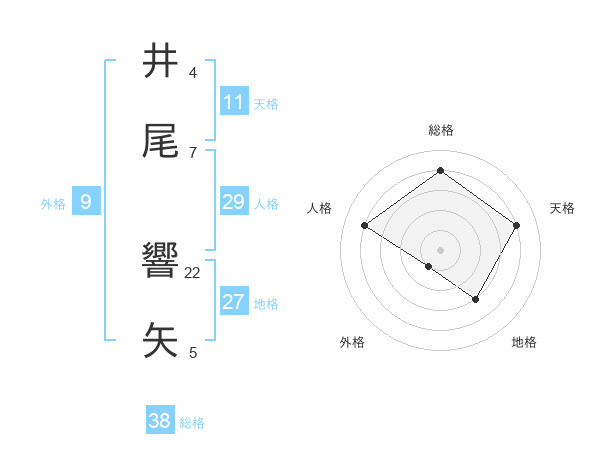 井尾 響矢さんの総格は38画の4点!