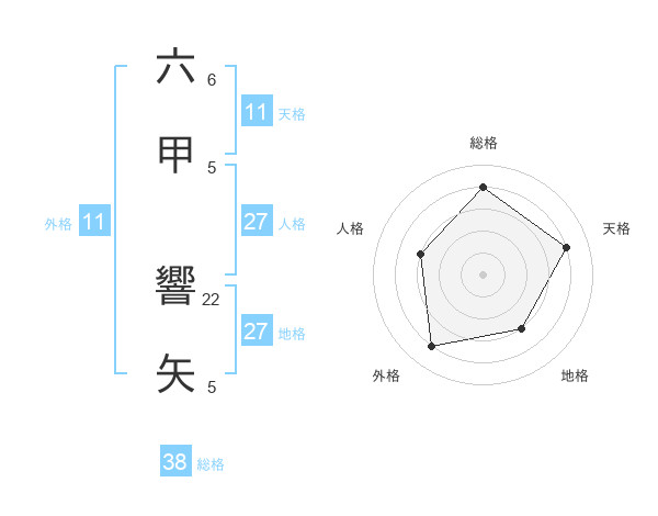 六甲 響矢さんを姓名の画数から五運を鑑定