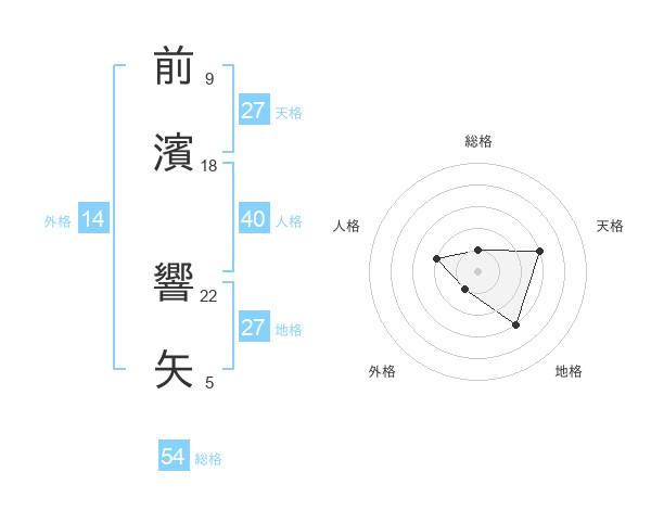 前濱 響矢さんの総格は54画の1点!