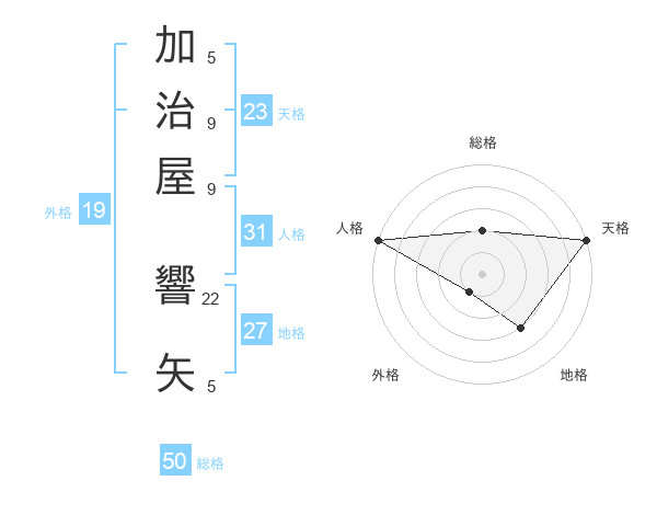 加治屋 響矢さんの天格は23画の5点!