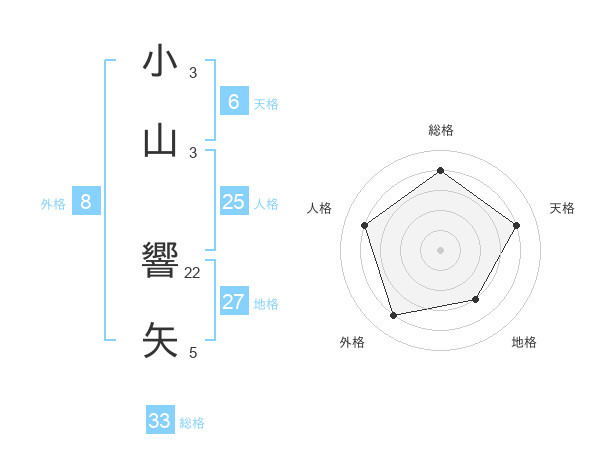 小山 響矢さんの総格は33画の4点!
