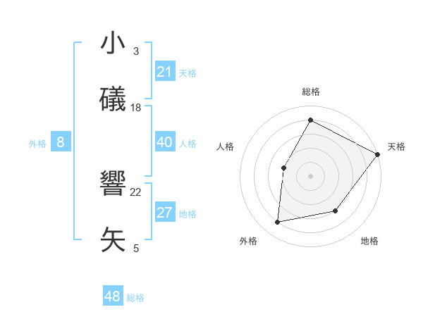 小礒 響矢さんの総格は48画の4点!