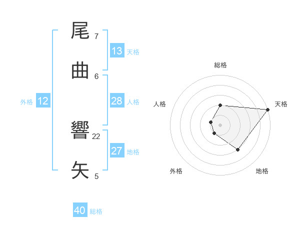 尾曲 響矢さんを姓名の画数から五運を鑑定