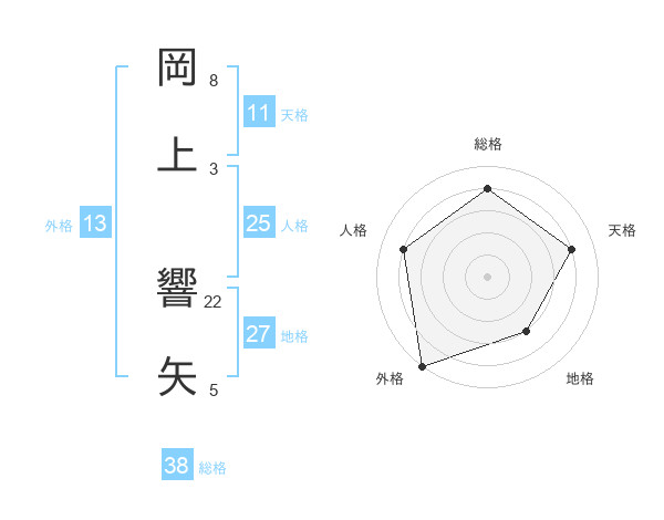 岡上 響矢さんの総格は38画の4点!