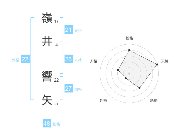嶺井 響矢さんの天格は21画の5点!