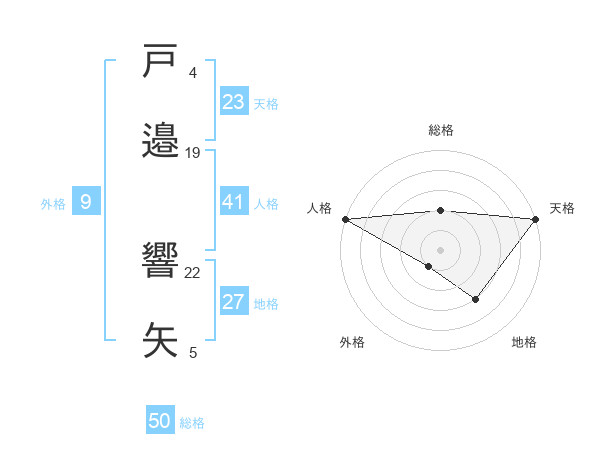 戸邉 響矢さんの総格は50画の2点!