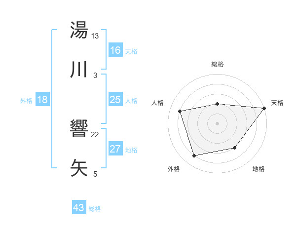 湯川 響矢さんの天格は16画の5点!