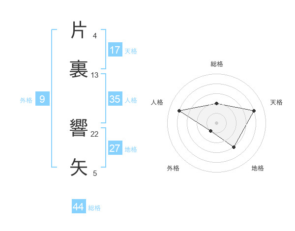 片裏 響矢さんの総格は44画の2点!