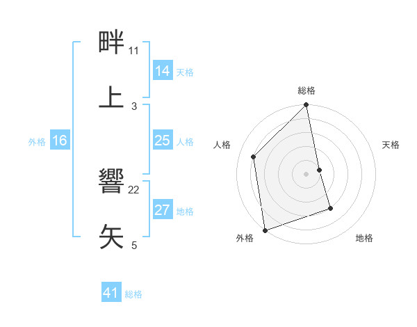 畔上 響矢さんの総格は41画の5点!