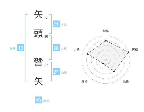 矢頭 響矢さんを姓名の画数から五運を鑑定