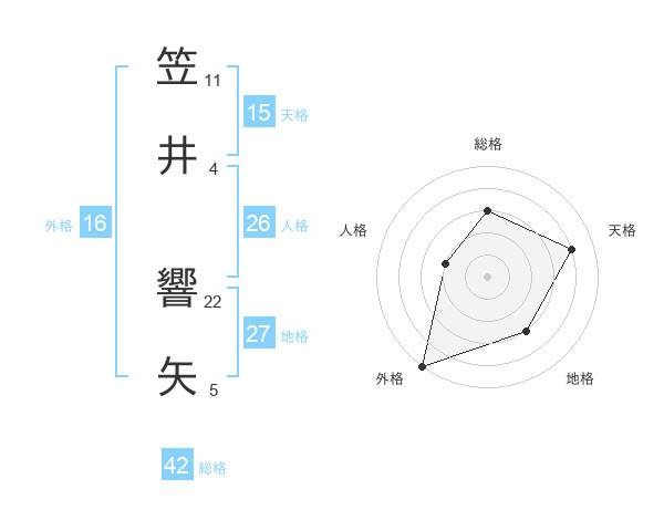笠井 響矢さんの地格は27画の3点!