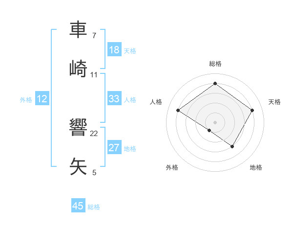 車崎 響矢さんの総格は45画の4点!