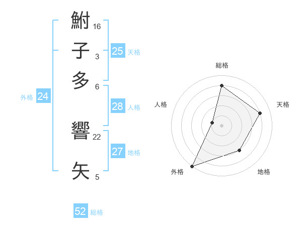 鮒子多 響矢さんを姓名の画数から五運を鑑定
