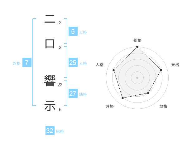 二口 響示さんの総格は32画の5点!