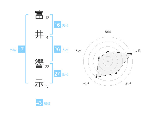 富井 響示さんを姓名の画数から五運を鑑定