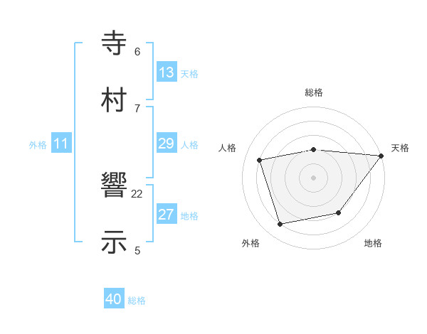 寺村 響示さんの天格は13画の5点!