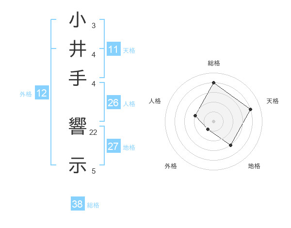小井手 響示さんの総格は38画の4点!