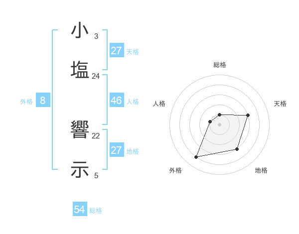 小塩 響示さんの総格は54画の1点!