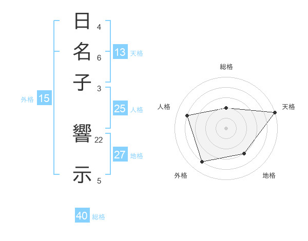 日名子 響示さんの天格は13画の5点!