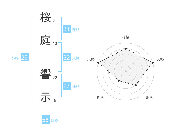 桜庭 響示さんの総格は58画の4点!