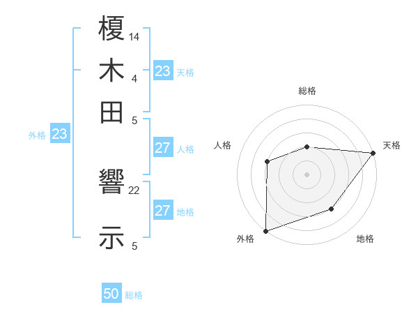 榎木田 響示さんを姓名の画数から五運を鑑定