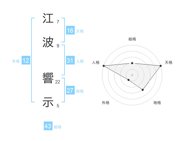 江波 響示さんの総格は43画の2点!