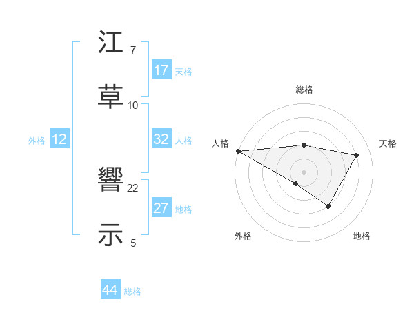 江草 響示さんの総格は44画の2点!