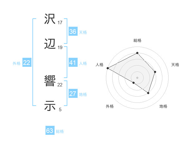 沢辺 響示さんを姓名の画数から五運を鑑定