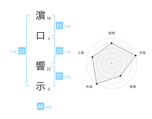濵口 響示さんを姓名の画数から五運を鑑定