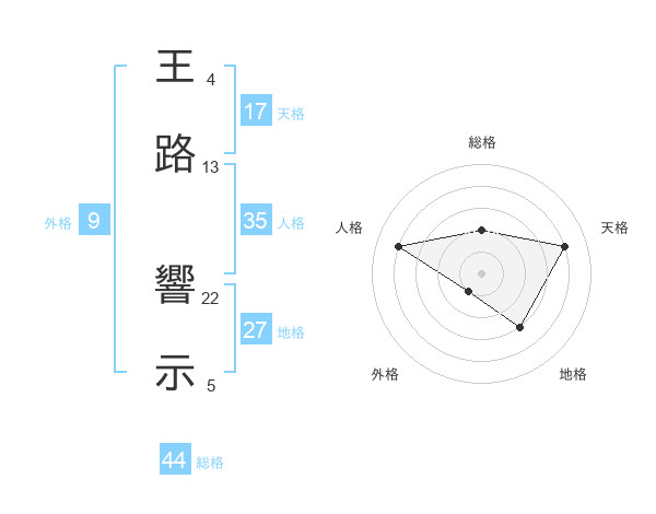 王路 響示さんの総格は44画の2点!