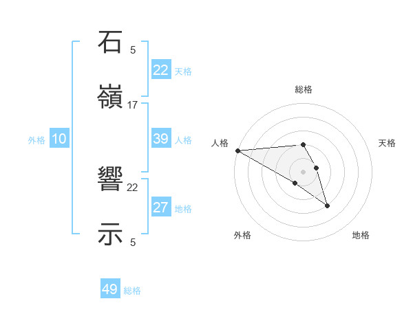 石嶺 響示さんを姓名の画数から五運を鑑定