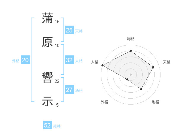蒲原 響示さんを姓名の画数から五運を鑑定