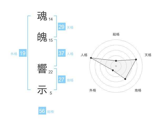 魂魄 響示さんを姓名の画数から五運を鑑定