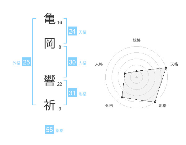 亀岡 響祈さんの天格は24画の5点!