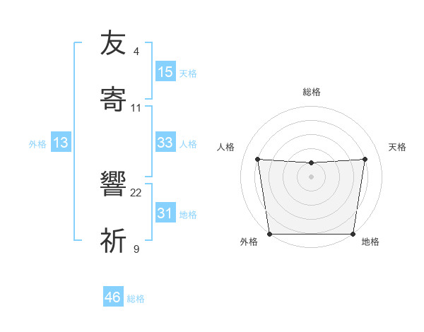 友寄 響祈さんの天格は15画の4点!