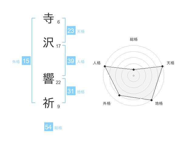 寺沢 響祈さんの天格は23画の5点!