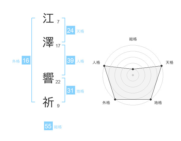 江澤 響祈さんの総格は55画の1点!