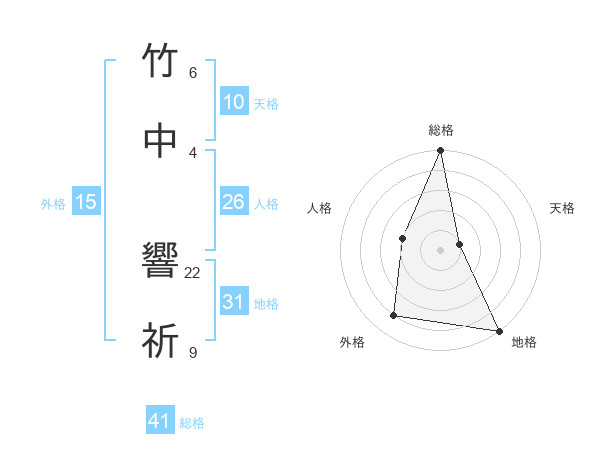 竹中 響祈さんの総格は41画の5点!