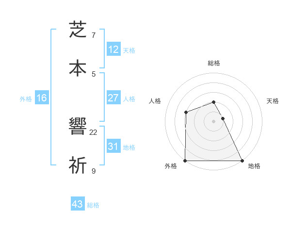 芝本 響祈さんを姓名の画数から五運を鑑定