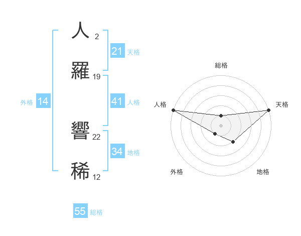 人羅 響稀さんの総格は55画の1点!