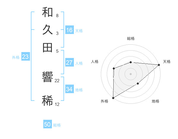 和久田 響稀さんを姓名の画数から五運を鑑定