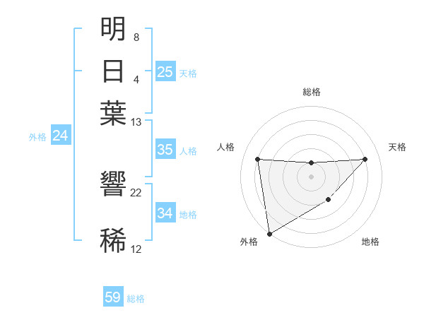 明日葉 響稀さんを姓名の画数から五運を鑑定