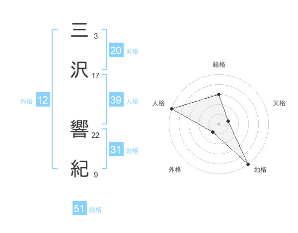 三沢 響紀さんを姓名の画数から五運を鑑定