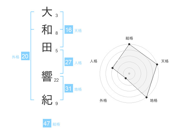 大和田 響紀さんを姓名の画数から五運を鑑定