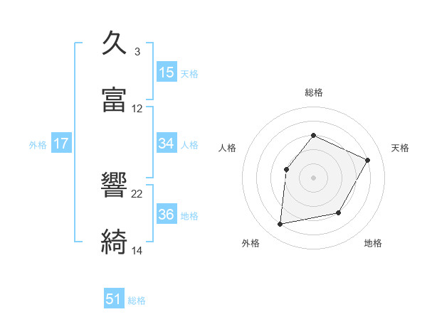 久富 響綺さんの総格は51画の3点!