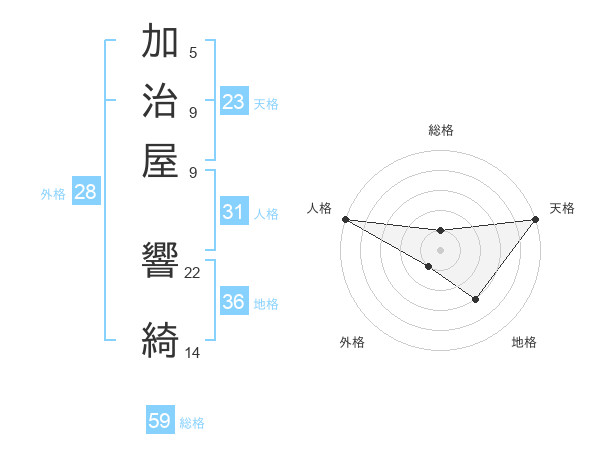 加治屋 響綺さんを姓名の画数から五運を鑑定