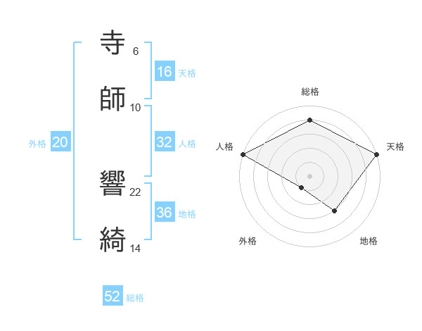 寺師 響綺さんの総格は52画の4点!